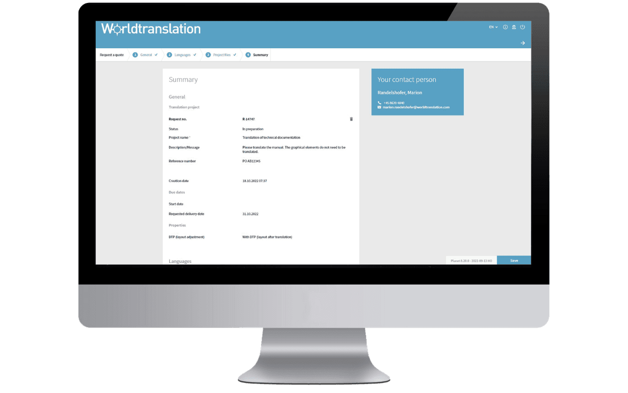 Bestilling, overvågning og modtagelse af oversættelser skal være nemt. Derfor har vores kunder fri adgang til vores kundeportal. Den browserbaserede portal gør filudveksling mellem dig og os så fleksibel og hurtig som aldrig før. Sådan sparer du tid, penge og e-mails.